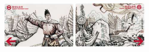 《郑和下西洋600周年纪念》地铁纪念卡由中国美术家协会会员、上海连环画艺术博物馆馆长杨宏富先生所绘。一套2枚,发行价18元,限量10000套。