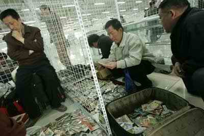 图为潘家园连环画交易会上收藏者在“淘宝”