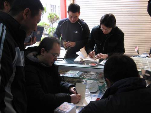 本月21、28日,广大连环画爱好者期待已久的《三国演义连环画选》(即连环画爱好者称为《三国补》)抵达我市。本地的萧博仁、徐昆林等原创人员在潘家湾文化收藏市场内的举行了作品的签名售书活动,在 “连友”中引起了不小的轰动,众多 “连友”齐聚“西南连苑”,火爆的购书场面与寒冷的天气形成鲜明对比。据“连苑”负责人介绍,前后不到5个小时, 200多套书即被“连友”抢购一空。