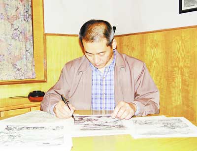 不断地涂涂画画,他慢慢喜欢上了绘画,这样的爱好一直伴随到他参加工作。