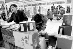 昨天上午,北京市第三届连环画交易会在潘家园市场拉开帷幕。可能是上午的阴雨天气影响了商户的交易热情,记者发现,现场近百个摊位只有半数商户摆了摊。