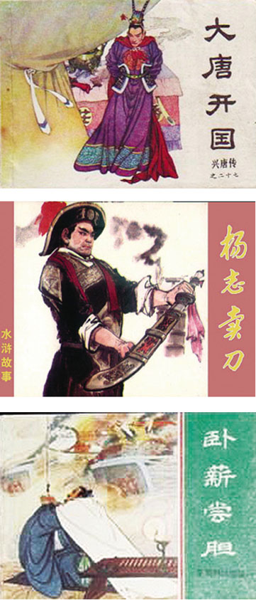 ※图为《大唐开国》、《杨志卖刀》和《卧薪尝胆》连环画单本,分别是《兴唐传》、《水浒故事》、《东周列国》三套连环画中比较少见的缺本。