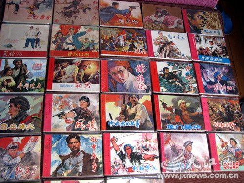 记者进入涂宏伟家的书房,发现在他的书柜里全是连环画。“我有3000多册连环画,当时连环画的故事都以文学名著、传统评书等内容进行改编,革命斗争故事也很受欢迎。如《兴唐传》、《杨家将》、《铁道游击队》、《地道战》等,尤其是我们江西出版的《江西革命斗争故事》系列,让我看得更带劲,如《八一风暴》、《井冈山小山鹰》等。”涂宏伟对自己收藏的连环画如数家珍。