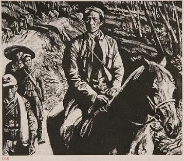 长征是上个世纪人类文明史册上无与伦比的奇观,为了生动地描绘这段历史,画家几度亲历长征路,访问当年参加过长征的老同志,从而深刻地领会到笔下人物的性格特点。尤其在众多真实人物形象的塑造上,摆脱了照片翻版痕迹的同时还增强了人物性格的特征和视觉形象感,不仅形似,更在于神似。