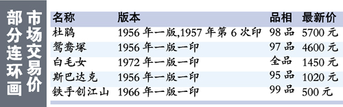 广州汇友连环画交流苑的巫耀强告诉记者,网上挂出的一本1955年一版一印的《我们这里已是早晨》,起拍价格490元,目前经过94次叫拍已经达到38600元,“卖家的心理预期价位应该还远未达到。”