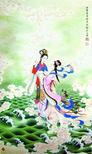 中央电视台举办的中秋晚会,数以亿计的观众欣赏到了舞台背景显示的中国年画《嫦娥奔月》。画中的嫦娥衣袂飘飘,云髻玉面,秋波流转,脚踏祥云,向着一轮桂枝婆娑、殿阁仙山的明月飞升而去……