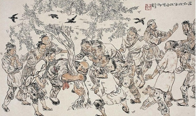 贺友直是特定时代、特定国度造就的连环画家,墨韵色彩上本身的变化并不多,以平实白描的手法致力于人物造型、生活场景及总体构图,从而使连环画脱离了小儿科而成就了蔚为大观。贺友直的连环画绝非一般意义上的“小人书”,而是一代人的集体“文化记忆”。从贺友直的连环画中,人们所看到的不仅只是一幅幅风俗画,更可以藉此追寻一个已经逝去的时代。