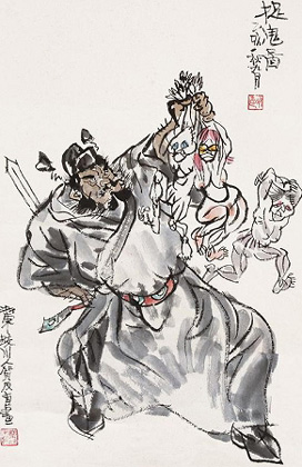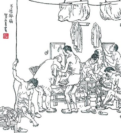 贺:画连环画最难的在于,表现出主题需要的,但文字没有表现出来的,用绘画图解文字只是表象的东西,不是深层次的东西。有人说连环画就是连环画,没有明确的概念。我说,连环画不强调技术性,强调表演性,构图形式,这是连环画的表演性。中央美院的年连系我呆了7年,教了7年的连环画,我悟出道理——油画系要教素描色彩,连环画没有基本技法。美术院校以工具分系,而搞连环画是一种艺术门类,没有基本技法,跟年画如桃花坞的年画、杨柳青的年画不一样,这些地方的年画,别的地方进不去,地区性极强。就像侯宝林的相声进不了北京京剧院,苏州评弹其他地区的人也进不去的。我教连环画一开始还一本正经的,后来觉得不能教,作为一个艺术门类,连环画是不能教的,从绘画角度来说,连环画可以用油画、水墨、版画来表现。