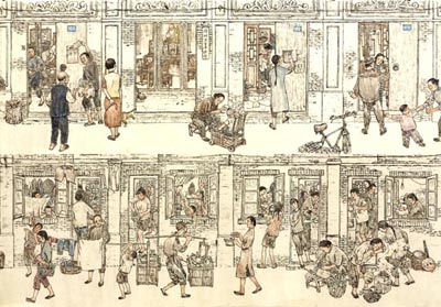 现已89岁高龄的贺老,近年来依然作画不止,尤其专注于老上海主题民俗风情画的创作,先后有《申江风情录》、《贺友直画360行》等精彩绝伦的系列画作问世,深受广大读者和“贺迷”喜爱。为迎接2010年上海世博会的举办,贺老又精心创作了多幅生动形象地描摹旧上海特有的世相百态和老上海弄堂里的市井生活的全新原创作品。于是,那些三四十年代的老上海市井风情、世相百态重新唤醒了人们的记忆:红砖墙,青瓦顶,街头巷尾,里弄石库门……城市故事在纸上鲜活传诵,伴随着市井人声的黄包车夫、街头裁缝、剃头匠、扦脚工、卖报童、押宝人、裱画师、兑币黄牛的熙来攘往,承载着众多海派记忆。这些作品都以超常记忆及细腻的“贺氏白描手法”让过去的历史重现眼前。作品在2010上海世博会四大主题馆之一的“城市足迹馆” 专题陈列展出,获得来自海内外参观者的好评。近日《贺友直画老上海》、《弄堂里的老上海人》两本精装新画册由上海人民美术出版社出版发行。画册呈现了从墨稿、铅笔稿、线稿至完稿整个创作过程,让读者在欣赏老上海人文风情的同时也全面了解贺老的绘画风格。