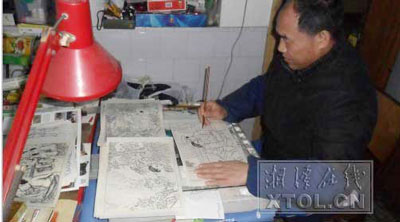 红网湘潭站2月23日讯(湘潭晚报记者 唐岱)烽火连天的抗战场面,我们只能从现在的抗战电视剧中看到,然而,家住湖南省湘潭雨湖区南盘岭的民间画家肖更应却历时三年,用自己手中的画笔,创作了抗战连环画——《潭州烽火》。