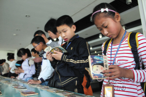 5月7日上午,收藏达人邵江飞在萧山书城三楼报告厅展出了他收藏的部分连环画。本报60名小记者一早来到现场,阅读连环画的同时,采访这位民间收藏达人,了解他的收藏经历,感悟他的收藏心得。