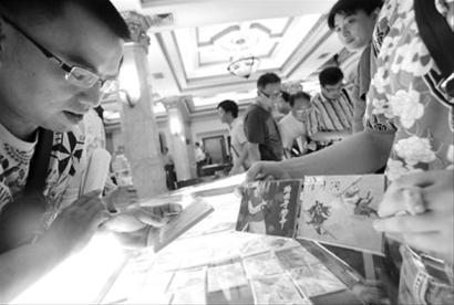 记者从业内人士处获悉,来自北京、内蒙、东北、武汉、江苏、温州等十多个省市的收藏家今天上午都齐聚国拍拍卖场,其中不乏业内大佬。来自抚顺的张先生昨晚刚刚抵沪,这趟千里之行就冲着一套《东周列国》,“其中三本品相不错,我的心理价位是每册5000元,买回去补足我的收藏。 ”一名举着68号号码牌的竞拍者则在拍卖一开始就大举收购,前三十多本拍品中竟有近半入其手中。
