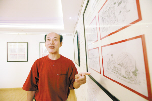 赵文玉正在介绍自己的画作。