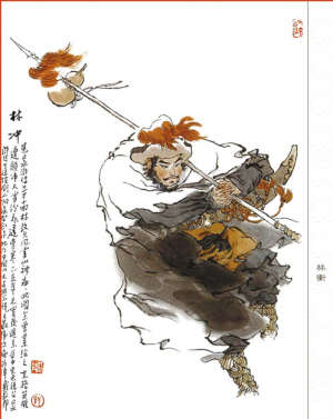 众多人物各具鲜明个性,是一部《水浒传》的主要艺术特色。戴敦邦以其入化妙笔,将此特色发挥到极致。他画林冲、杨志、呼延灼,着意表现的不在于他们超群逸伦的身手武艺,而是他们的精神世界。以林冲风雪夜奔态势,揭示其于险世路的怨怒之心,隐忍内衷;藉杨志曲背伫立寒风,抱刀欲卖情状,概括其一生偃蹇的命运。戴敦邦在画集中塑造的水浒英雄,梁山好汉,形神俱足,无一雷同,个个韵致灵动。