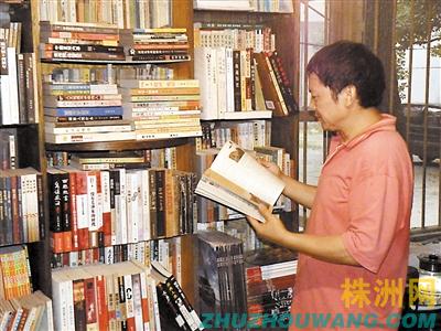 罗克维在家翻看藏书。
