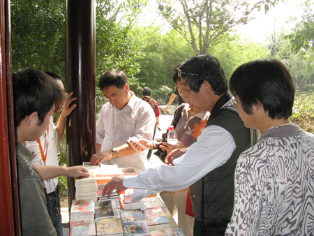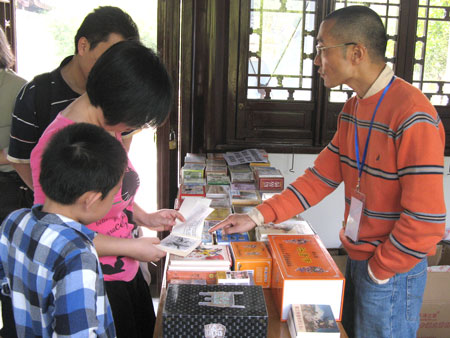国庆期间,上海连艺文化传播有限公司连续七天在古猗园内设摊,展示了上百种连环画及部分原创作品画稿;摆出了一批长板凳,供游客在这里“坐一坐,看一看”;还以优惠价向读者供应一批精印的重版、初版连环画本,受到大量游客的欢迎。
