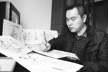 他从未进过美术院校进行专业训练,却靠着从小坚持不懈的临摹,自学成长为当代连环画家新秀;作品从未进过书店销售,但他的创作订单已排到明年年底,作品刚出炉就被全国的“连友”购买收藏……他就是45岁的李明,我市一建材公司的工会主席,如今靠业余时间进行连环画创作,年收入一二十万元。前日,记者走近李明,揭开了他自学成材的奥秘。