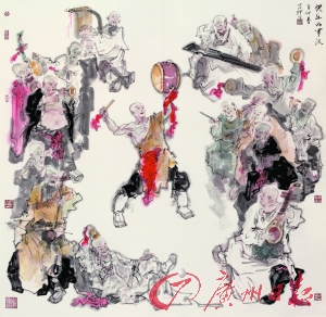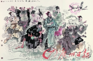 他们曾经是“连环画时代”呼风唤雨的领军人,今天,他们又成为国画界佼佼的人物画家。他们当中之一的叶家斌近日在广州市人民北路广东文联艺术馆举办《奇妙纵横——叶家斌中国画展》。展览分“金色童年”、“神仙罗汉”和“唐韵汉风”三大部分,其中有达数米的巨制,作品达130余件,充分展现了“连环画时代”走出的画家在人物动态和造型上的功力,从中也可以品出那个特有的艺术时期的艺术精神在今天的余音。