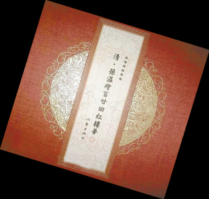 本次展出的大型彩绘连环画本《红楼梦》属于推篷装的册页,共计24本。每册的封面与封底为木质垫板,垫板由米色绢包裹,绢上洒金,画面为绢本,纵43.3厘米,横76.5厘米。图册中缺少小说第104回至108回情节的画面,表现其余115回情节的画面俱在。