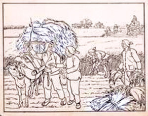 1949年后,对旧的绘画形式的改造,首先是从最为普及的年画、连环画开始的。1949年11月26日,文化部公布了《关于开展新年画工作的指示》。1950年,毛泽东又向文化部提出改造旧连环画。为此文化部副部长周扬指令美术处处长蔡若虹在美术处组建了大众图画出版社。上世纪50年代的连环画创作内容与后来的传统故事叙述大不一样。新社会下关注农生成为艺术创作的主要角度。1950年,李桦先生参加了京郊的土地改革,同年,创作了连环画《换工互助》。这幅作品主要内容是表现劳动英雄高贯斗和大护驾庄的故事,应该是新中国连环画创作最早的一批了。作品以严谨娴熟的写实手法,表现了新社会新农村的新气象。