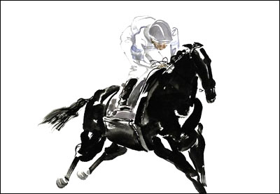 徐勇民笔下善马,几笔浓墨,于是驰骋之快意顿出。其知名的《马球》系列,正是于运动中蕴藏气力,速度与勇气的贲张中,虽然描摹的是古人的运动状态,却将现代人的境界和情怀游走笔端。