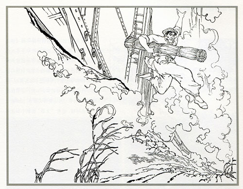 1955年顾炳鑫先生创作的《渡江侦察记》采用素描的手法,您在美院读的是西画,但这套书却采用传统的线描手法,当时是怎么考虑的?据说程十发先生对绘画手法曾做过具体的指导。