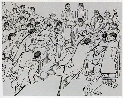 连环画《红岩》之特务学生捣乱会场