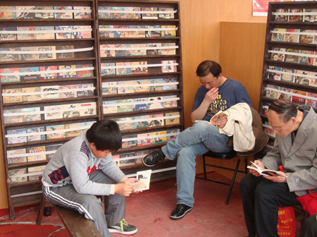 上个世纪80年代以来,电视、网络等新型媒介盛行,国外卡通、动漫更是在青少年中大行其道,挤占了传统连环画的生存空间,出版社也鲜有出版新的连环画。在历史的大潮中遗留下来的连环画成了收藏品,不再有广泛的流通率。近来上海连环画的收藏市场越来越火,节节升温。现在每本连环画的最低起拍价已经从一年前的10元、20元升至100元。其中一些收藏大户是从古旧字画或其他艺术品收藏转行而来的。喜欢连环画,收藏连环画的人不在少数,他们自称为“连友”,即连环画之友,吴震宇就是其中之一。生于上世纪60年代后期的他,自言从小受连环画的影响深刻。“每天妈妈下班回家,我做的第一件事就是翻她的包,看她今天给我带回来了什么书。”吴震宇沉浸在童年时代的回忆里,“记得当时的图书馆很多,连环画是里面必不可少的。除了妈妈带回家的,还有就是同学间相互借。”那时候不分什么内容,只要是连环画都看,连环画伴随着他成长,也给了他知识。中学毕业时,吴震宇家里已有上千本连环画。在他看来,拍卖会的大户不能称为连环画的爱好者,他们只是收藏家,书买来等着它们升值,然后再卖了。“上世纪50年代初期,上海有个连环画出租者联谊会,会员估计有700到1000人。”吴震宇拿出他在第五届连环画拍卖会上以250元价钱拍得的上海连环画出租者联谊会会员证说,当年上海街头巷尾遍布小书摊,这些小书摊成了最受上海大众欢迎的活动图书馆。当时借一本书只要几分钱,摊主靠此一天可以有2元钱的收入,足以养活一家人。“他们的存在也促进了连环画在社会上的流传,当时一本连环画可以发行几百万册,现在真是难以想象。”吴震宇的话中充满了感慨。