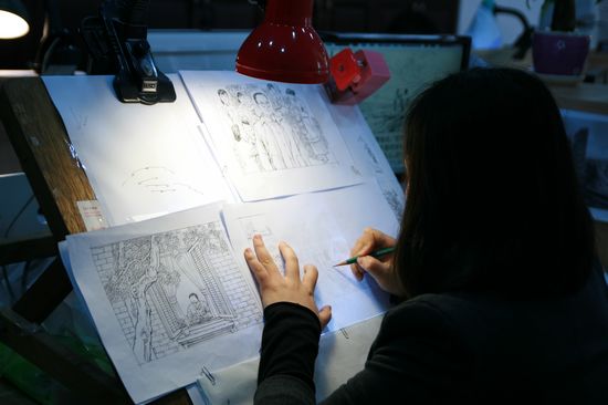 上海海派连环画发展中心的青年画家正在创作。