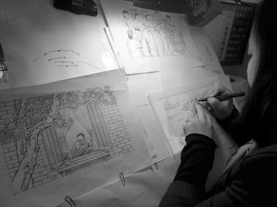 “连环画的创作具有特殊性,没法靠学校培养,虽说对于日式漫画的风格无法苟同,但他们以一个主要画家带领几位学生以工坊的形式创作,在画家的指导下学习和完成作品的方式是我们可以学习的。”范生福表示,“只有在项目实践和组员相互协助下,他们才能得到成长,并提高创作水平。”而如今,在海派连环画中心的创作室内,八位新人中的四位在经过一年多的锻炼和创作实践后,已经具有独立创作的水准,他们的成长为连环画的创作发展注入了新鲜活力,可这个数量还是远远不够,如何更好、更快地培育连环画创作人才,是海派连环画中心正在考虑的重要问题之一。针对连环画爱好者、从业者,中心推出主题讲座、入门课程、专业课程、研修课程等各类培训项目,希望能够尽快培育出一批具有独立创作能力的连环画画家。“通过我们的创作项目,希望能让年轻人关注和喜爱连环画,至少我们先行起来,希望也有人能跟上,只有大家共同努力,连环画才能得到快速良好的发展。”刘军说。