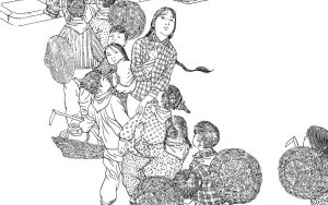 一支笔、万条线,贺友直用手掌大小的“小人书”影响了几代人。他的代表作有《朝阳沟》《小二黑结婚》《山乡巨变》《十五贯》等,这些手稿成列在展厅里,让很多观众勾起儿时的回忆。有人说,画姑娘是贺友直的强项,就是比那些男性人物看上去要多情。就拿他最满意的作品《朝阳沟》来说,画里的小姑娘站在那里,手帕在手指间绕来绕去,更显身姿摇曳。老人眼睛一亮,“那是我画出情调来了。”