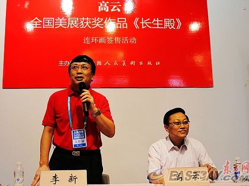 东方网记者唐漪薇8月17日报道:著名画家高云与张乐平、程十发、贺友直、戴敦邦、刘继卣、华三川等同被列为“中国连环画十家”之一,他的作品笔法隽永抒情,气势磅礴,曾经包揽获全国美展金银铜及特别奖、提名奖,并连续两届斩获全国连环画评奖最高奖。今天傍晚,高云携其全国美展获奖作品《长生殿》来到上海书展与读者见面,再叙唐玄宗与杨玉环千古唏嘘的爱情。