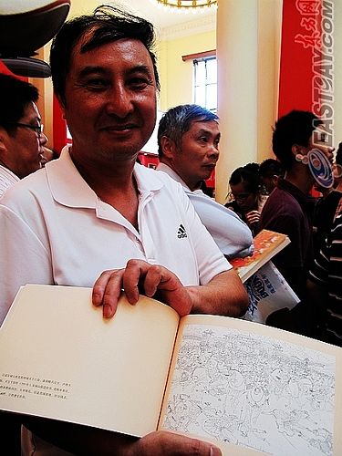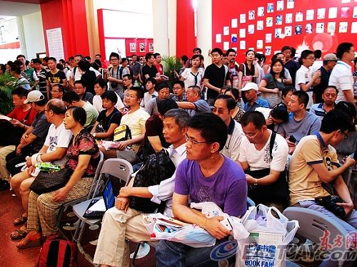 今天是上海书展“周末日”第一天,上海展览中心人头攒动,摩肩接踵,签售场面已不能以“人声鼎沸”形容。东方网记者在上海人民美术出版社签售现场看到,事实上,不少读者一次购入不止一本,许多人获签后久久不愿离去,中途几次返场希望得到一些扉页赠言,但终因排队人数太多被保安婉拒。截至记者发稿时,现场绕场一周的队列延伸至世纪出版集团其他展馆,队伍中除了中老年连环画爱好者,还有不少青年白领与在校学生。
