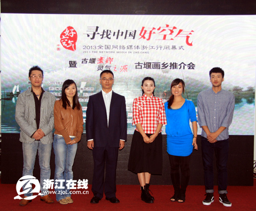 浙江在线10月19日莲都讯(记者 徐振帆 摄影 赵乃澄) 无论结局如何,爱情的开始总是美好的,在如画的风景里,诗般的空气里,一个回眸一个眼神的交接邂逅一段动人的相遇,成就到一辈子的幸福或许是每个人内心深处最大的渴望。今天上午,“幸福”在古堰画乡与你相遇,参加“寻找中国好空气——2013中国网络媒体浙江行”的近百位领导、记者、微博达人和旅行社代表齐聚一堂,见证了微电影《相遇》及同名摄影连环画的首发仪式,为他们的寻气之旅增添了一股浪漫的幸福味道。