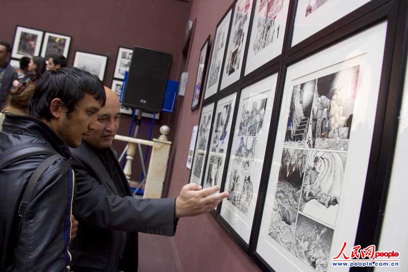 在乌兹别克斯坦塔什干,中国连环画展吸引众多市民驻足参观。摄影:人民网记者黄文帝