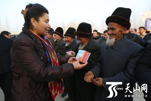 天山网讯(通讯员陈晨摄影报道)12月17日,喀什地区伽师县为夏普吐勒乡巴依托喀依村农户发放“热爱伟大祖国,建设美好家园”系列连环画。伽师县按照已形成的流程和制度,将自治区配发的连环画免费发放到农户家,使文化惠民工程惠及千家万户。这次发放到户的连环画共有54672套。