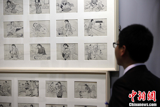 3月19日,一位观者在中国嘉德37期四季拍卖预展中观看拍品《如何带孩子》原稿,在此次拍卖会中大批新中国解放初期的连环画本创作原稿登陆拍卖场,这些画作精美细致,均无底价起拍,据介绍该类拍品看似是窄众小项收藏,但均出自美术大家之手,无底价起拍为了降低门槛让更多收藏爱好者伸手一试。中新社发 杨可佳 摄