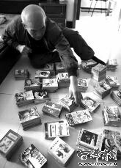 李国庆的父亲将小人书拿出来摆在地上展示 记者 陈团结 摄