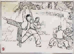 老画家韩敏喜欢京戏,常以唱戏来比喻画。传统京戏里头的唱念做打,生旦昆丑都极有讲究,中国画里的线条笔墨也一样要有章可寻。如线描中的十八描。白描(线描)是中国人物画中不可或缺的一个主要内容,线条的好坏直接关乎画家的艺术造诣的高低及所画作品格局大小。他重视古人总结出来的对线条的要求,诸如对高古游丝描,兰叶描,钉头鼠尾等等的运用,要以最精练、最节省的线条勾勒出人物的精神面貌。