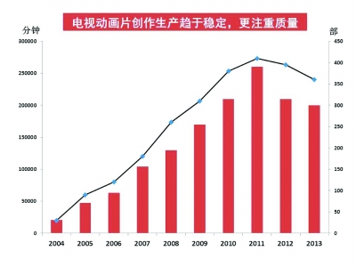 “动漫产业应从‘量’的扩张转到‘质’的提升,动漫企业不是越多越好,分钟数也不再是主要指标,而需要培育更多的动漫精品大作。”国家新闻出版广电总局宣传管理司司长高长力指出,“近两年,动漫电视片的产量在回落,这表明中国动漫业正在从‘数量型’向‘质量型’转变,从‘规模型’向‘集约型’转变,说明市场已经在动画电视资源配置中发挥了主导作用,而各级政府扶持政策也更趋理性。”
