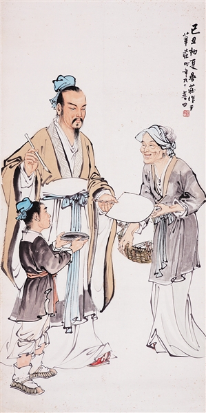 右军题扇图 国画(97岁时作)