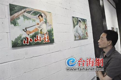 在画展现场,老的连环画《渡江侦察记》、《南征北战》、《列宁在1918》、《邱少云》、《黄继光》、《杨根思》、《飞车擒特》、《小山娃》等41幅封面油画作品,都是泉州民间画师张子川先生利用业余时间画出来的。