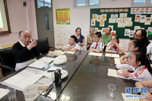 6月23日,在上海市徐汇区第一中心小学的连环画兴趣课堂上,93岁高龄的著名连环画家贺友直为学生讲课。新华社签约摄影师 朱影影 摄