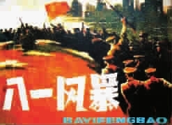 这五本连环画虽然都与南昌起义这段革命战争史有关,但却风格迥异,各具特色。年代最久的这本《南昌起义》是红军故事系列之一,是由人民美术出版社1959年出版,64开本,共54页,封面的绘者是革命题材的著名画家毅进,彩色的封面画的是南昌起义革命军在总指挥部会议大厅前誓师动员的壮观场面,正文部分则由高远、赵越共同创作,画笔简洁生动,画风平实质朴,颇具艺术感染力(图上左)。另一本《南昌起义》是根据同名电影选编的连环画,由上海人民美术出版社1982年出版(图下左),64开,142页,电影《南昌起义》相信很多人都印象深刻,是上世纪80年代家喻户晓的红色经典,那时候还没有电脑光盘和视频技术,连录像带也是凤毛麟角,人们回味自己喜爱的影片更多地就是通过阅读电影版连环画。此外,还有三本都以《八一风暴》为名,讲述了1927年那一段腥风血雨的革命历史。江苏人民出版社这一本出版于1978年,是根据同名京剧改编的(图上右),三位绘画者都来自基层文化部门,分别是苏州文化局翁富荣、无锡文化馆王勉和吴县文化馆的顾曾平。内容最丰厚的一本是人民美术出版社1981年出版的,页数多达188页(图下右),是由话剧改编而来。品相最新的是连环画出版社2011年新印的版本(图上中),近年来伴随着小人书的怀旧热潮,连环画市场冬尽春来,很多优秀的连环画再版重印,这本由著名画家谢京秋先生绘画的《八一风暴》就是精品再版之一种,并且是谢老的获奖作品,50开本的大小完整地保留了画作原貌,该书初版是由辽宁美术出版社1979年出版的,由于印数较少,如今在“连友”圈中也是一本难求了。