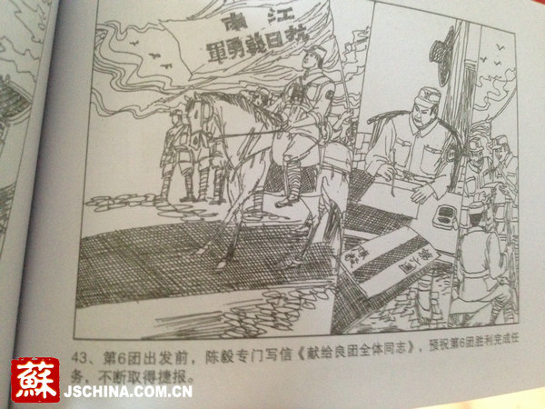 在活动中,记者拿到了一本名为《水西一九三九》的连环画。连环画样式复古,一张图配一段文字。画风简洁,内容生动,主要表现了陈毅、粟裕等老一辈无产阶级革命家在水西村的抗战故事,彰显正能量。