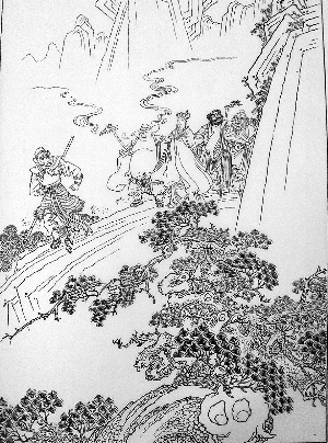 在连环画的创作高峰期,连环画创作任务重塑了艺术家们的艺术风格,画家又根据时代要求塑造人物形象,人物形象再塑造读者的人格,这个大循环形成了良好的文化小环境。以钱笑呆和赵宏本两位沪上连环画大家合作的《孙悟空三打白骨精》为例,此作1962年由上海人民美术出版社出版,该作中,有着“连坛祖师爷”之称的赵宏本主要负责人物造型和构图,同样名列“连坛四大名旦”的钱笑呆则主要承担精稿的勾线。两位大师把宋代马远的嶙峋怪石引入到连环画中来,于是虚幻缥缈的神鬼之气便扑面而来。对于人物塑造,他们借鉴了明代陈洪绶的造型手法,将神、道、佛的人物脸部刻画得高古朴实,正气凛然;而妖怪的造型上反倒吸收了生活中的人物素材,有着动人的生活气息—特别是白骨精的几次变身,都留有她本人的底子,倔强而不择手段。云霭雾瘴的用线也妥帖自然,又极富传统装饰趣味。