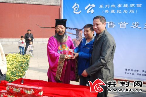 饰演包公的周先生说,他就是看包公连环画长大的,后来看包公电视剧,再后来竟然还演上了包公,这次《包公》故事系列连环画的在开封府的首发,更让他非常兴奋,特意为六本连环画书题书名。“包大人”说,通过包公连环画等形式,让包公的形象活在每一个华人的心里!