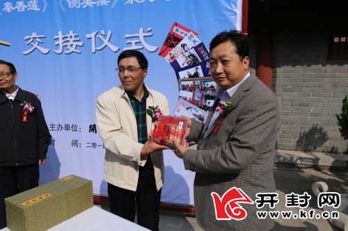 开封网讯 记者袁洋报道 10月25日,在千古名衙开封府,在迎接中国开封第32届菊花文化节的喜庆氛围中,中国优秀收藏家姚嘉康先生捐赠包公系列连环画交接仪式在开封府明礼院前举办。开封府董事长段朝现、开封府副总经理刘天增、开封市委宣传部副调研员庞志民、中国收藏家协会报刊收藏委员会常务委员副秘书长、全国纸品收藏联盟连环画收藏活动委员会副主任、中国优秀收藏专家、苏州市助人为乐道德模范姚嘉康、全国首届“全民国防教育先进个人”、原铁道部《铁道知识》杂志社社长兼主编、全国总工会《中国职工教育》杂志副主编魏宗燕、苏州著名民营企业家刘菊敏、开封包公研究会副会长、著名包学专家李良学、“刘少奇在开封陈列馆”馆长张雪志等出席了仪式。