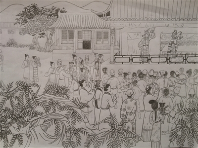 “魏良辅是明代的,连环画上面的人物服饰、建筑物风格、室内物品等都要符合时代的特点,我将反映那个年代的连环画,像《聊斋志异》、《红楼梦》等找出来,参考里面的风格。”钟庆辉说,每张画面都由她亲自组织构图、设计情节,难度大的人物动态她亲自画出草图再让学生画出来,有的画面要反复修稿两三次,有些前期画好了还会被否定。一段时间后,学生们把初稿画出来了,但钟庆辉发现原文稿画面缺少故事的细节描绘。“别看现在的初稿有63幅画,其实开始按照文稿画出来只有36幅。而这36幅画只能简单地反映魏良辅的一生,吸引力不够、可读性不强。”钟庆辉说,细节描绘没有文稿支撑,这使得创作的难度又增加不少,为此她又开始着手解决这一问题。