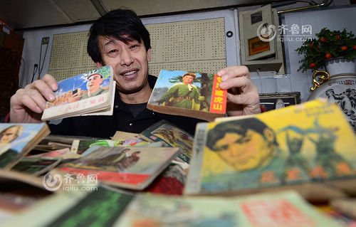 1000多份年代久远的老报纸,超过2000册“小人书”,500多张改革开放以前的老照片,数百种老票据,还有数不尽的各种老物件……所有的这些都是青岛人陈承杰的藏品,而收藏到这个规模,他用了整整20年时间。不论是民国时期宣传单,还是上世纪60年代的四大名著连环画,或是建国初青岛栈桥的老照片,那些难得一见的“老古董”都被陈承杰完好地保存下来。为了收藏,年过五旬的他仍坚持每天去旧货市场“淘宝”,每个周他还要去古玩城兜一圈寻找有趣的老物件,收藏已经成了他生活中的重要部分。(齐鲁网记者 孙志文 摄影报道)